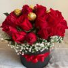 Caja corazón con rosas rojas o el color de su elección acompañado de chocolates ferrero.