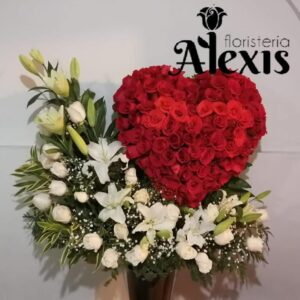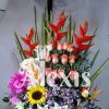 Diseño elaborado con heliconias, rosas, lirios y follajes acompañado de globo acorde a la ocasión