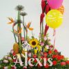 Diseño elaborado en base de madera o rustica con rosas campanas de Irlanda y follajes con moño de cinta